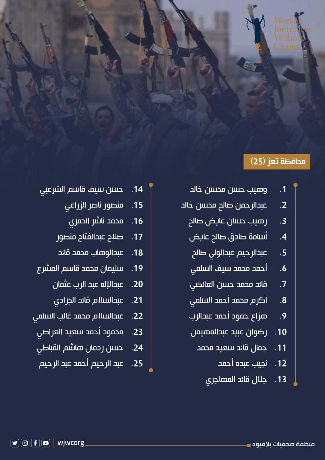 قائمة أولية بأسماء المختطفين خلال الفترة مايو - اغسطس 2025